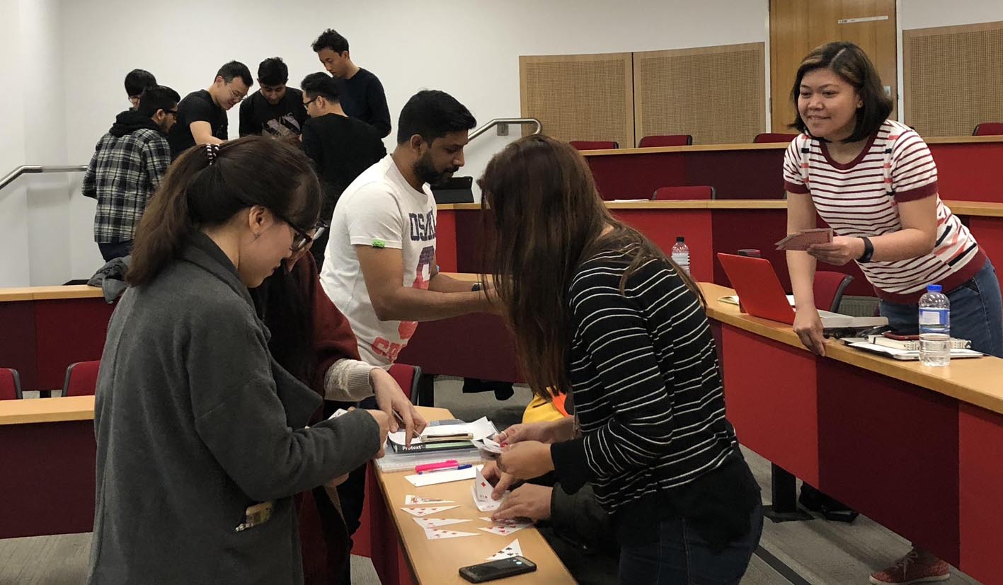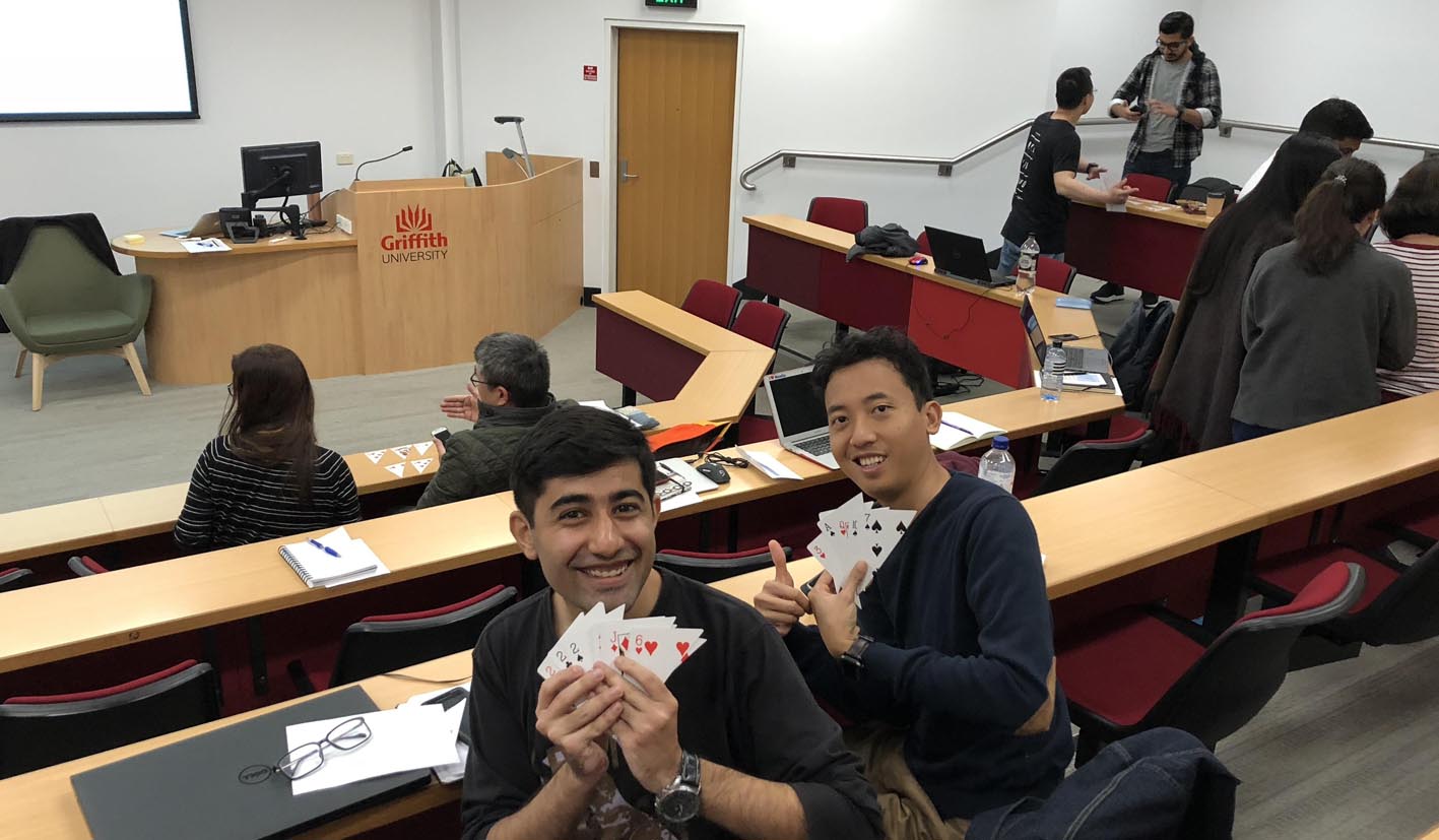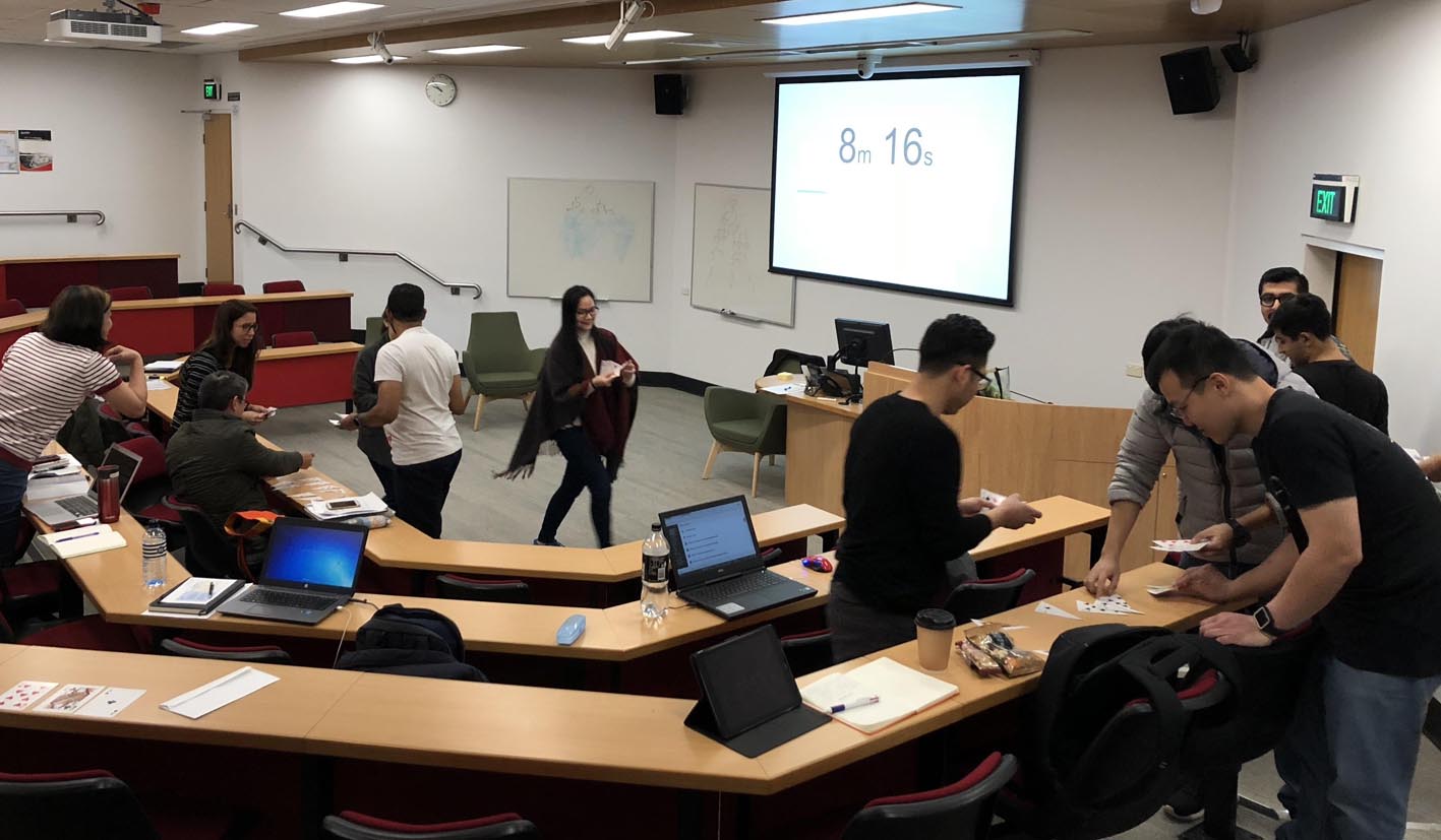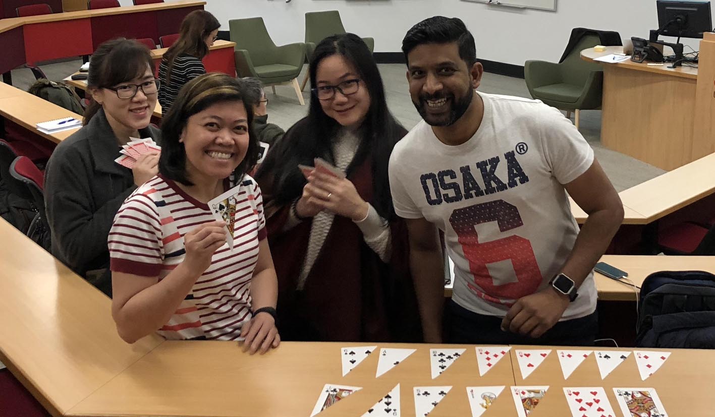 Mr Omid Haass from the Department of International Business and Asian Studies had his postgraduate students enjoying a game of mix n match cards in their Sustainable Supply Network Management for the Next Decade lecture at the Griffith University South Bank campus. Students learned to apply their communication, strategy, negotiation and problem solving skills by bargaining and bartering their half cards with other groups. Mr Haass said, ‘the team building activity was recommended to me by a colleague and the students found it both fun and enlightening.’